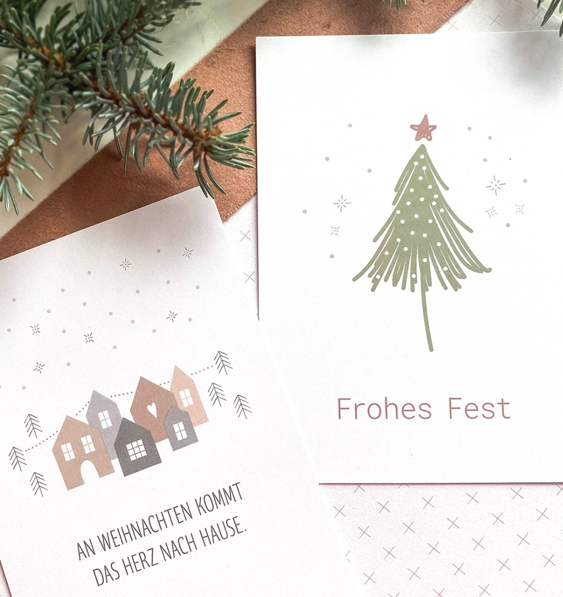 Ich bin in diesem Jahr trotz ausfallender Weihnachtsmärkte besonders früh in Weihnachtsstimmung gekommen. Das lag nicht zuletzt an meinen zwei Weihnachtskarten, die ich spontan entworfen habe und die mir wieder vor Augen geführt haben, was an Weihnachten wirklich zählt: Nachhause kommen und anderen eine Freude machen! Die schlichten Weihnachtsmotive sollen genau diese Botschaft vermitteln und eignen sich daher aus meiner Sicht wunderbar zum Versenden und Verschenken, weil wenn wir mal ganz ehrlich sind: It’s the most wonderful time of the year! 🙂